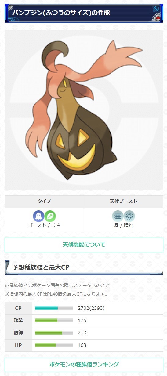 ポケモンgo攻略 Gamewith バケッチャ系統のサイズについて バケッチャ系統のサイズは4種類 原作ではサイズで種族値が異なる 計算するとポケモンgoでも種族値が異なる 画像はそれぞれのパンプジンの予想種族値です パンプジンの詳細はこちら